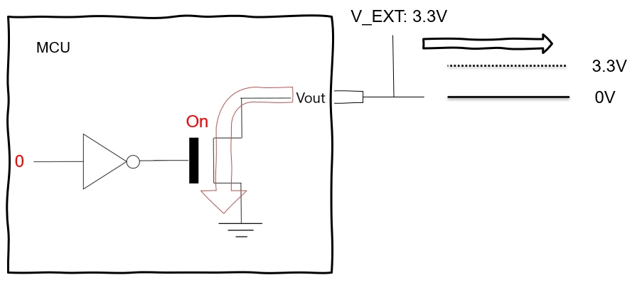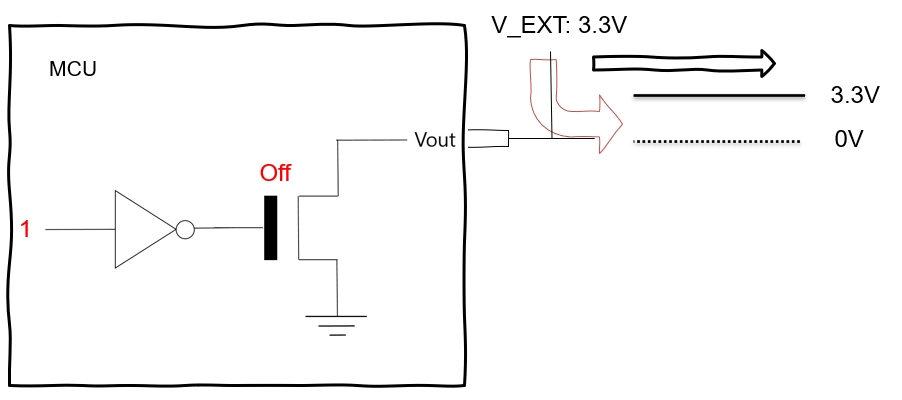 Open-drain 모드인 경우 MCU 내부의 모습을 살펴보도록 합시다.