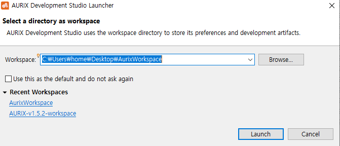 그러면 저는 바탕화면에 Aurixspace 폴더를 생성해 Launch 해보겠습니다.