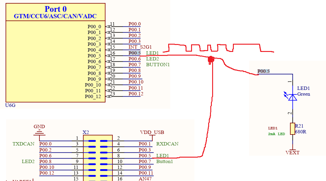 P00.5에 걸리는 전압이 LOW -> HIGH로 HIGH -> LOW로 변화된다면 LED에 걸리는 전압이 변화하며 LED의 강도가 LOW에 가까울 때 약해졌다가 HIGH에 가까울수록 강도가 세지는 것으로 분석할 수 있습니다.