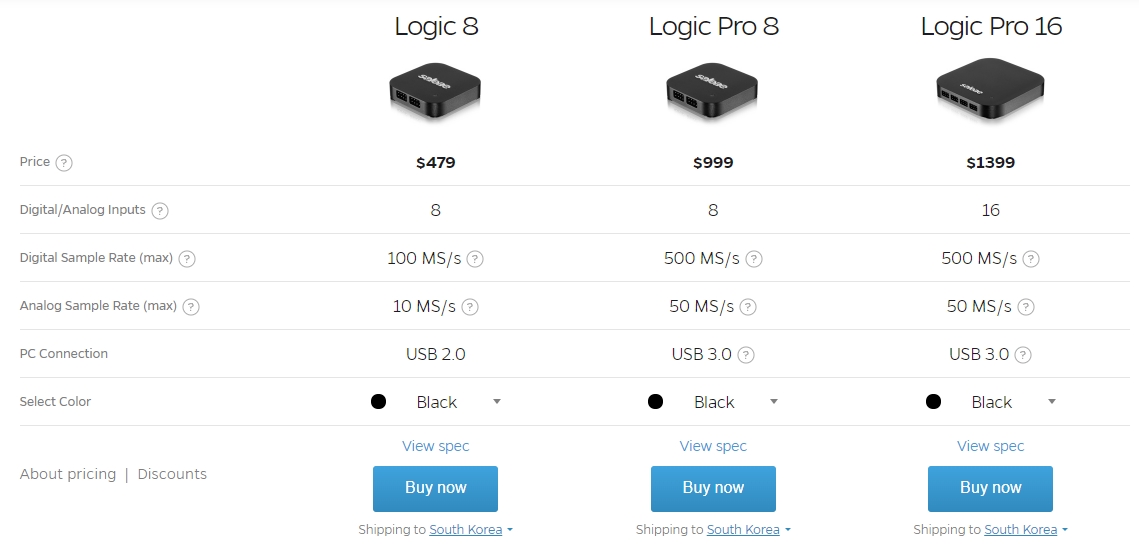 우선 가격이 너무 착합니다. 만원 초반대면 구매하실 수 있고 saleae 프로그램을 이용해서 측정도 가능합니다.