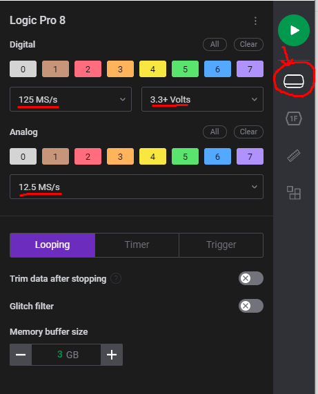 2. Saleae 로직 아날라이저 - Device Settings 탭