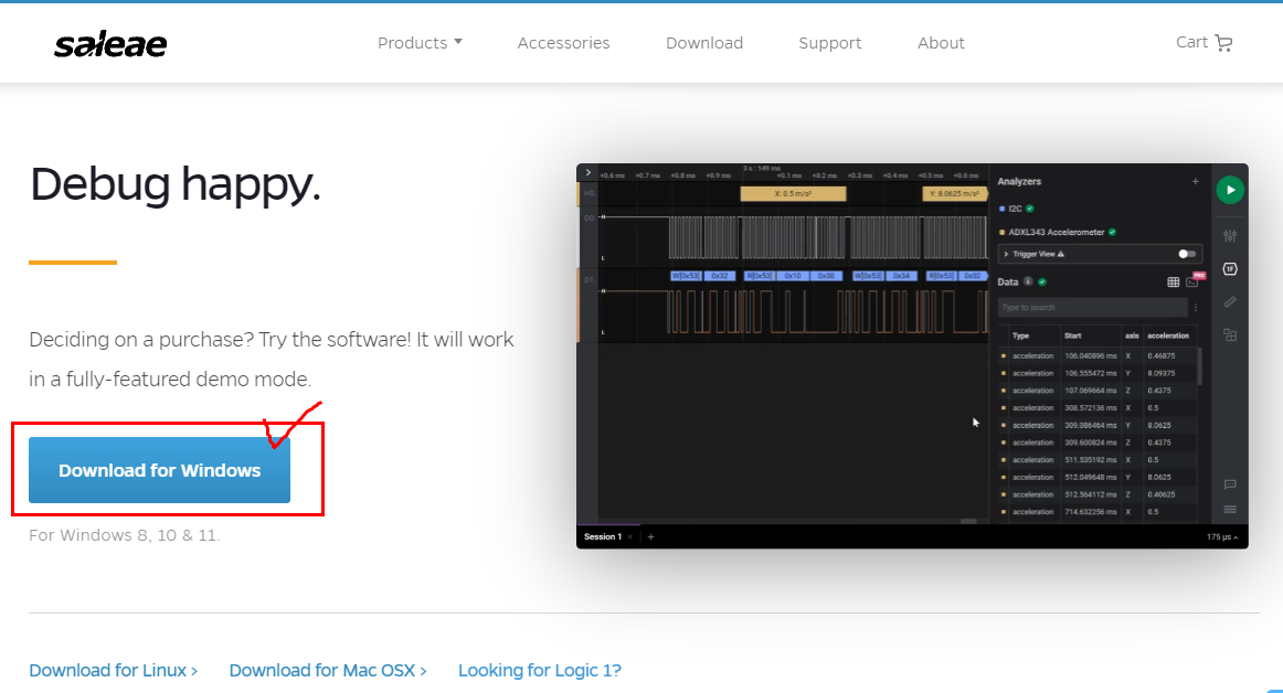 아래 경로는 Saleae 로직 아날라이저를 다운로드할 수 있는 링크입니다.