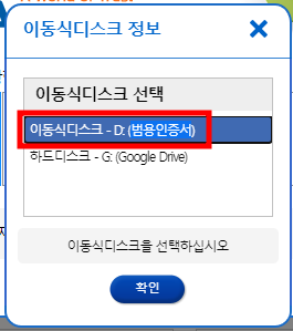 제가 USB 이름을 범용 인증서로 저장해놓아서 다르게 보이실 수 있습니다.