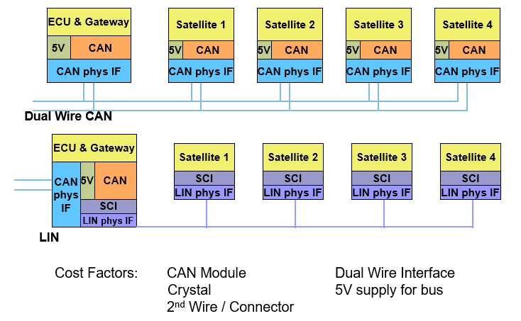 CAN 모듈이 LIN 모듈보다 Cost가 높으므로 코스트 절감이 발생합니다.
