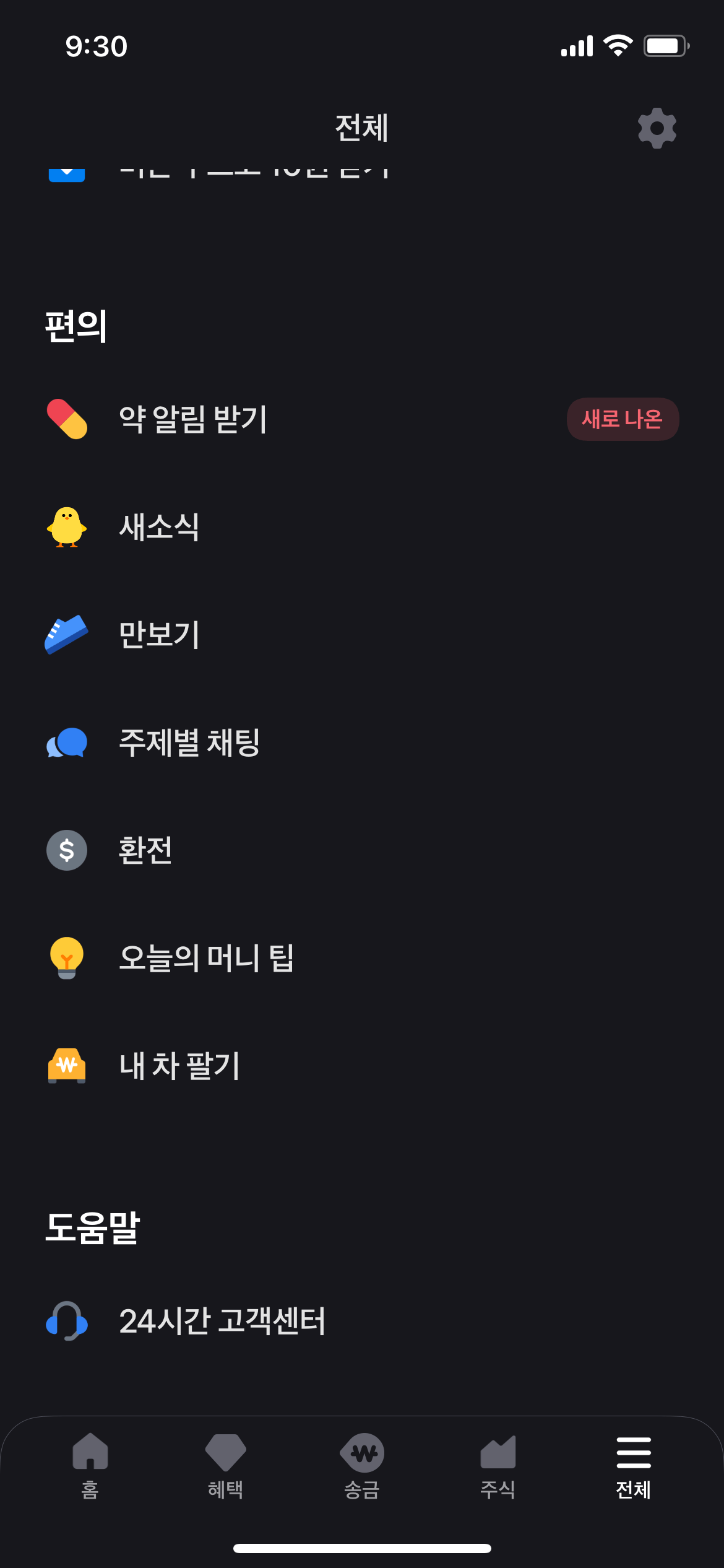 그리고 드래그로 아래쪽으로 쭉 내리면 편의라는 카테고리를 만나실 수 있습니다.